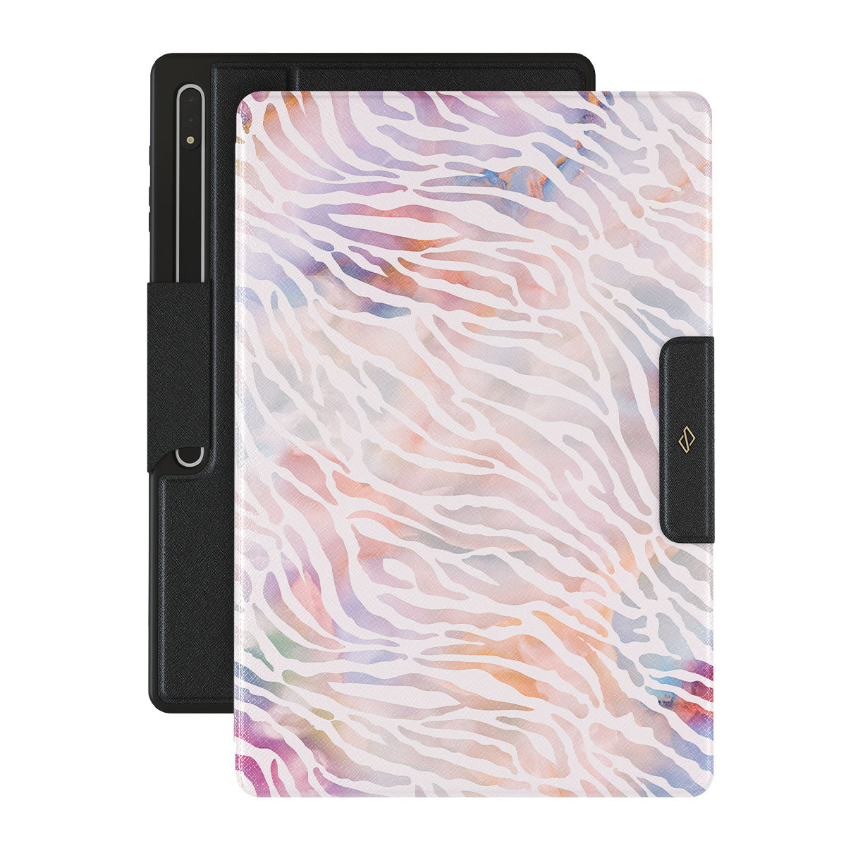Sultry July Samsung Galaxy Tab S8 Ultra folio case combines an exotic zebra pattern with the softest shades of pink. The Zebra pattern adds a touch of energy, while pinks will emphasize a softer side. This trendy Galaxy Tab case cover will keep your cellGalaxy Tab safe and sound from any falls or scratches.