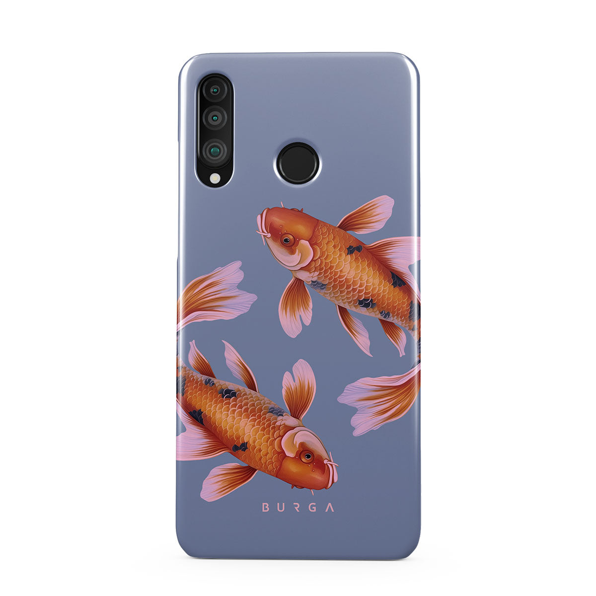 In the embrace of serene blue, the golden koi swirl, a symbol of life's fluid nature and the grace of going with the flow. Their dance is a serene meditation on the currents of destiny and the elegance of adapting with purpose. Discover our Zen Huawei P30 Lite phone case design.