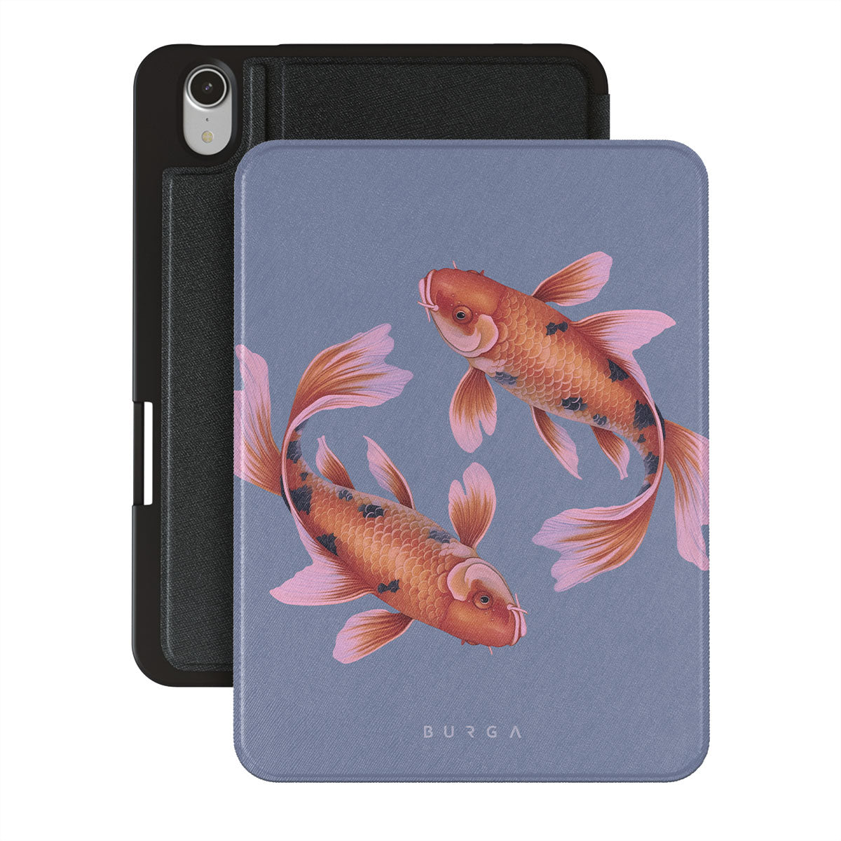 In the embrace of serene blue, the golden koi swirl, a symbol of life's fluid nature and the grace of going with the flow. Their dance is a serene meditation on the currents of destiny and the elegance of adapting with purpose. Discover our Zen iPad Mini 8.3 (A17 Pro/6th Gen) 2021 folio case design.