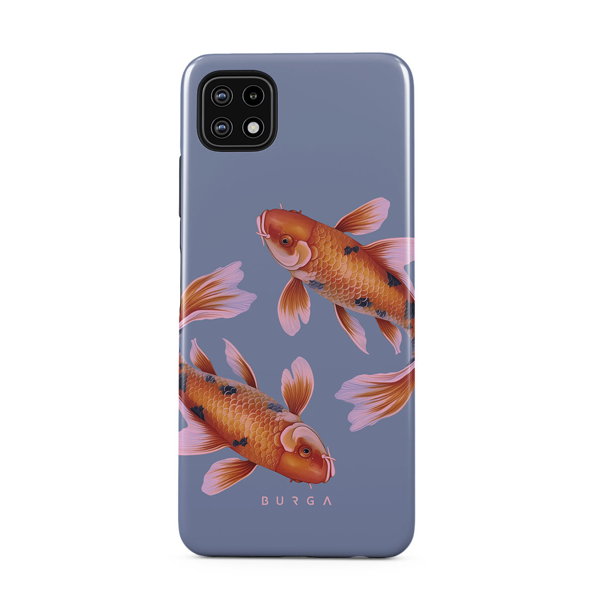 In the embrace of serene blue, the golden koi swirl, a symbol of life's fluid nature and the grace of going with the flow. Their dance is a serene meditation on the currents of destiny and the elegance of adapting with purpose. Discover our Zen Samsung Galaxy A22 5G phone case design.