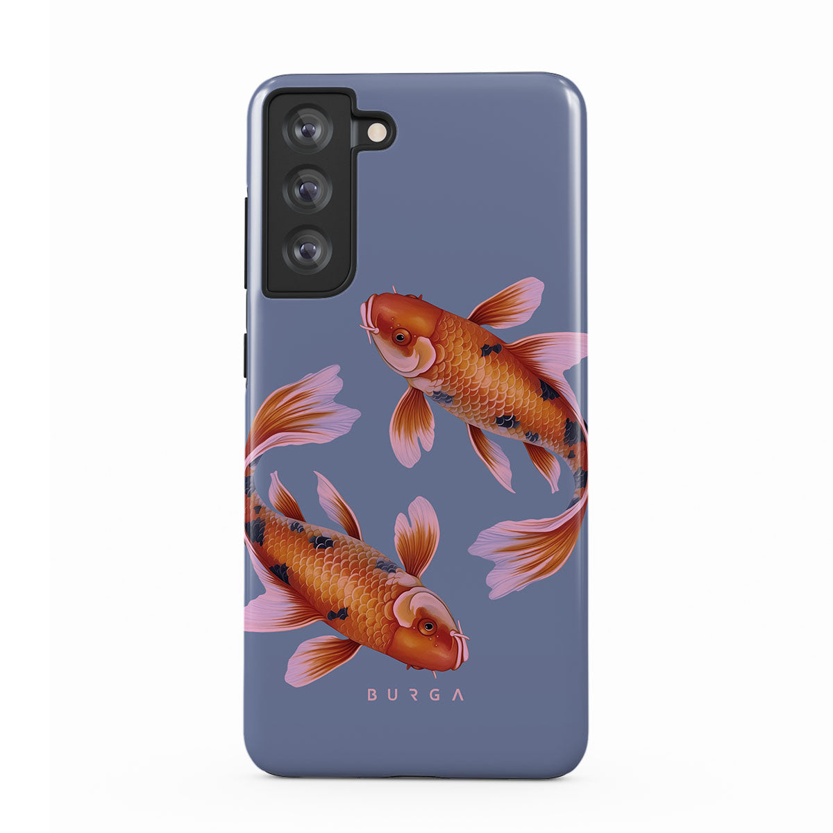 In the embrace of serene blue, the golden koi swirl, a symbol of life's fluid nature and the grace of going with the flow. Their dance is a serene meditation on the currents of destiny and the elegance of adapting with purpose. Discover our Zen Samsung Galaxy S21 FE phone case design.