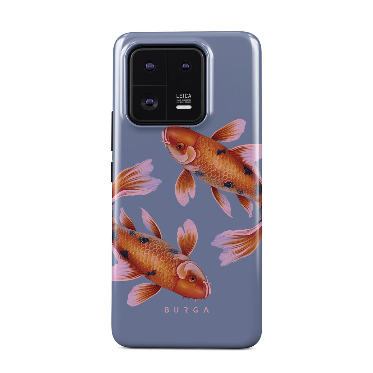 In the embrace of serene blue, the golden koi swirl, a symbol of life's fluid nature and the grace of going with the flow. Their dance is a serene meditation on the currents of destiny and the elegance of adapting with purpose. Discover our Zen Xiaomi 13 Pro phone case design.
